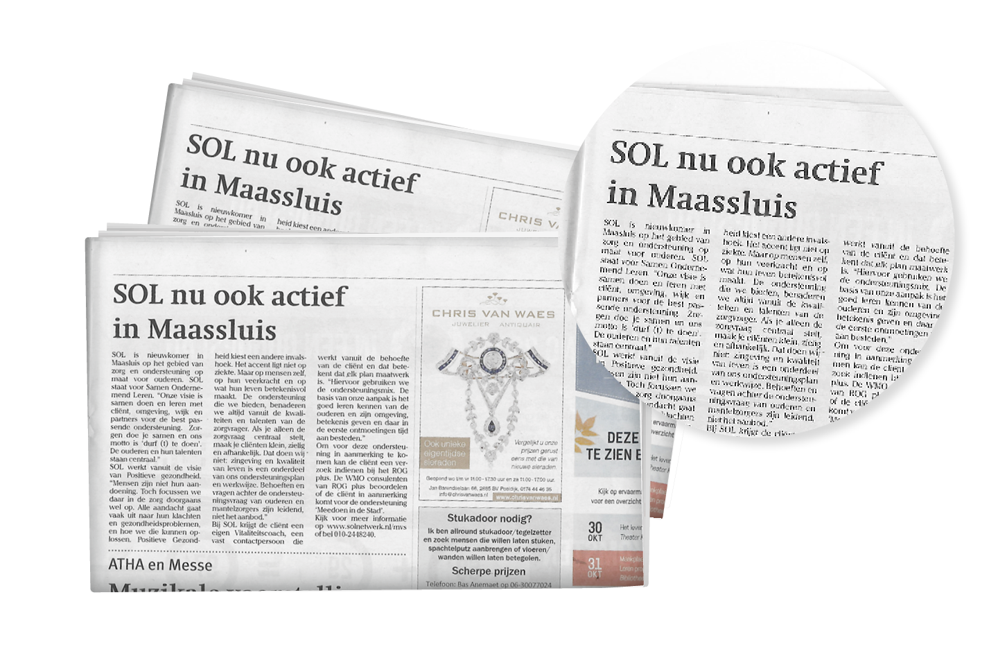 Aanwinst ‘Ondersteuning van Ouderen op Maat’ in Maassluis, Vlaardingen en Schiedam2020 tekende zich behalve door COVID-19, ook door kansen en mogelijkheden. Zo bleek SOL begin 2020 een van de beste partijen als het gaat om de aanbesteding voor Ondersteuning van Ouderen op Maat in de plaatsen Maassluis, Vlaardingen en Schiedam. Een ondernemende nieuwe dienst in een voor ons nieuw geografisch gebied.