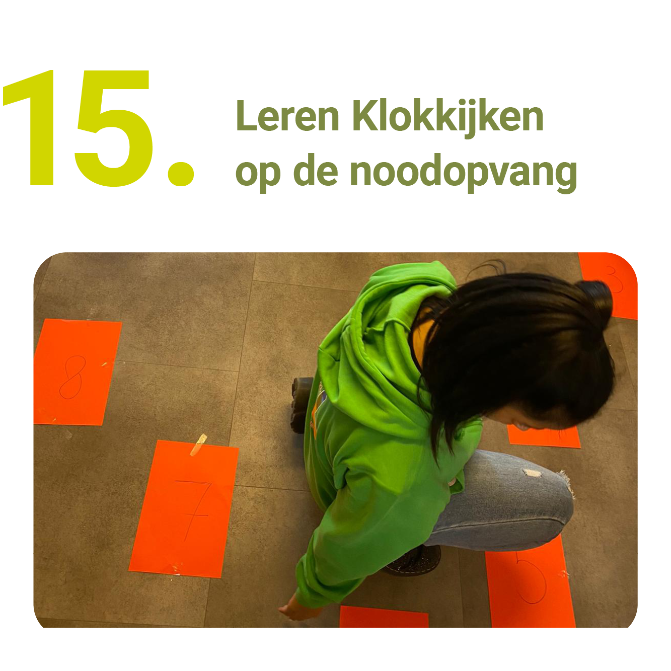 “Als de maatregelen het toestonden, gaven we les op anderhalve meter afstand of we gingen naar buiten. Dat de groepen intact bleven, komt echt op het conto van onze vrijwilligers. Hun missie was om hoe dan ook contact te houden met de groep. En dat is ze, hoe lastig ook, gelukt.”