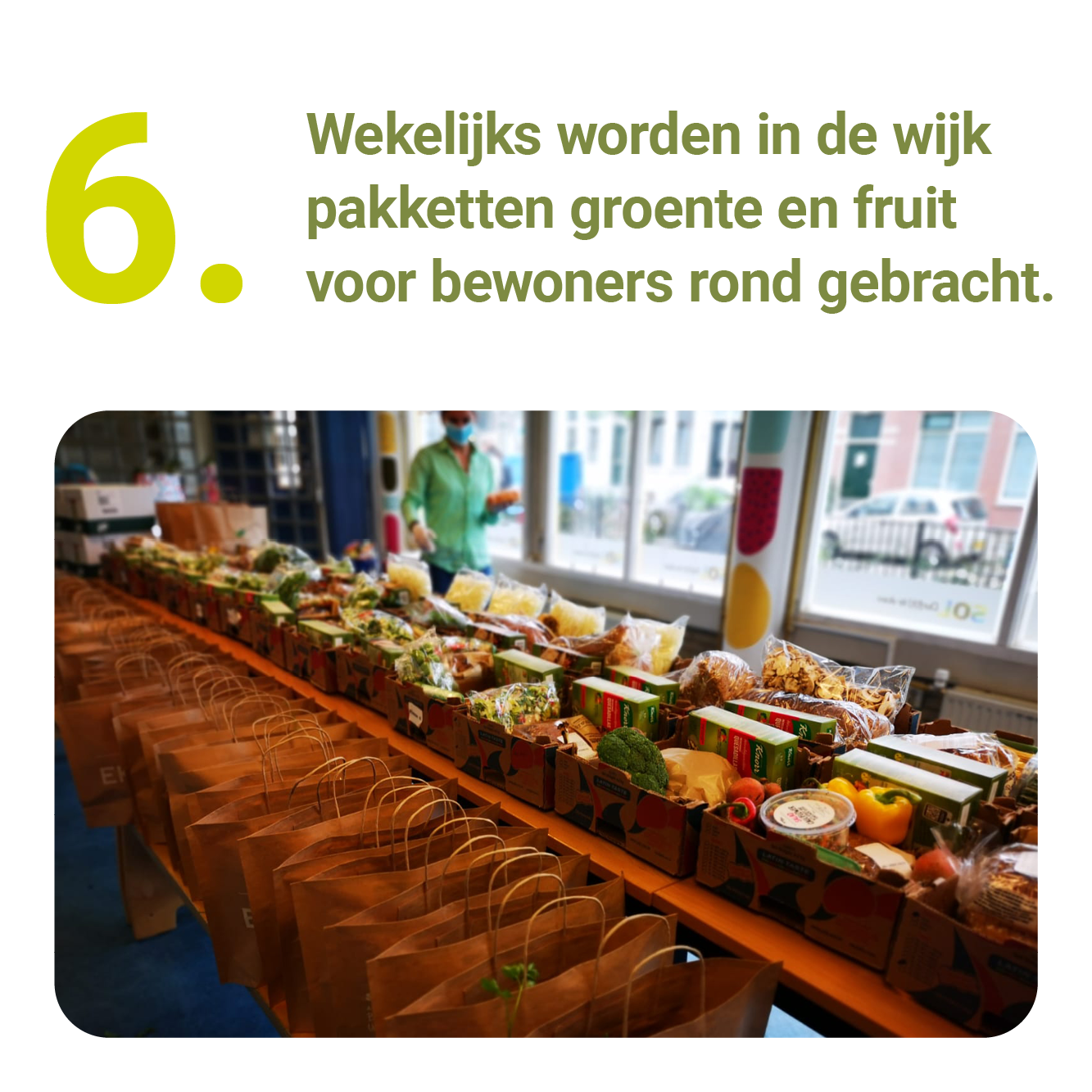 Nadat zij dit had toegepast in Rotterdam Charlois en Tilburg, startte zij halverwege 2020 samen met SOL met de voorbereidingen ervan in Rotterdam-Noord. “Want juist nu vanwege corona is de behoefte aan contact heel groot”, zegt SOL activeringscoach Miriam Garrido Otero. “Voor een aantal wijkbewoners weegt het isolement zo zwaar”, zegt zij, “dat hun leven bijna niet meer leefbaar is. En ondanks hun eigen situatie, helpen ze liever een ander, dan zelf om hulp te vragen.”