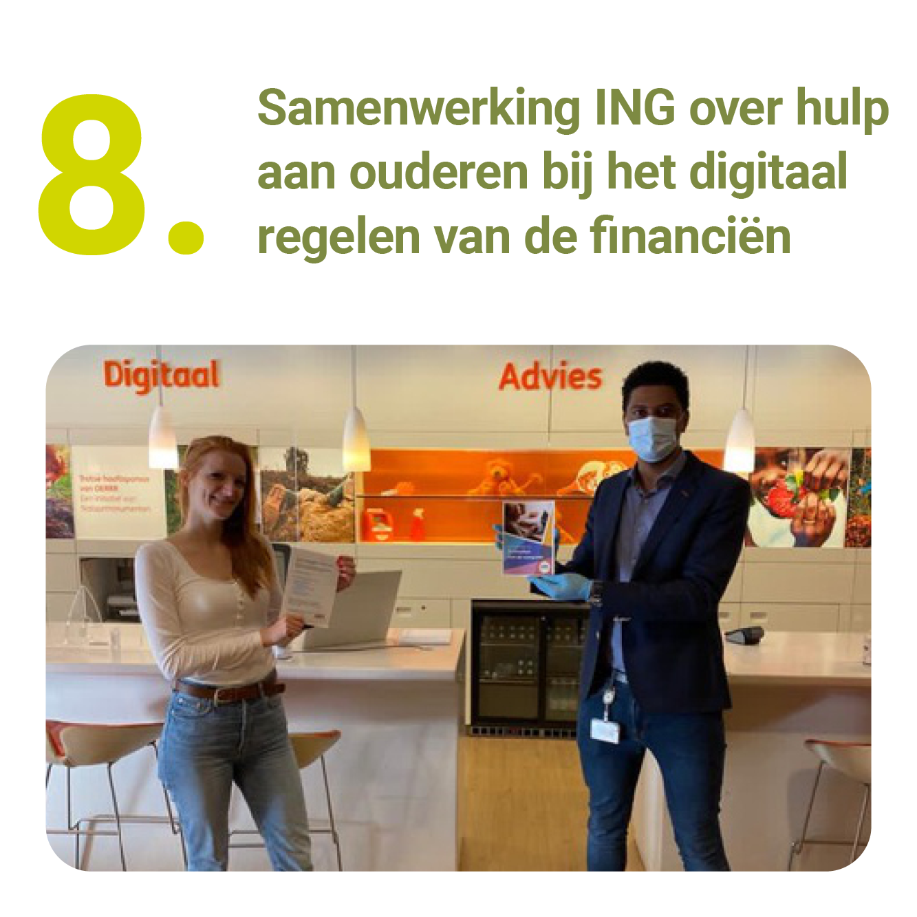 “Wat wij ook bemerkten is dat veel partijen – hoewel het steeds meer voorkomt – nog veel vragen hadden rondom dit thema. Daarom zijn wij in overleg met de gemeente voorlichtingen gaan geven: aan ouderen, mantelzorgers, vrijwilligers en professionals. Dat financiële uitbuiting een vorm is van ouderenmishandeling, weten mensen vaak niet. En als je erachter komt, wat doe je dan? Hoe werkt de meldcode exact? Wat doe je als er duidelijk sprake is van financieel misbruik maar de oudere geen aangifte wil doen uit angst een waardevol contact kwijt te raken. Het is jammer dat het vooral online ging, want het mooiste is natuurlijk als wij ouderen persoonlijk preventief kunnen voorlichten, zodat zij direct weten wat ze in dit soort gevallen moeten doen, waardoor het eerder afneemt en vroeger gesignaleerd wordt.”