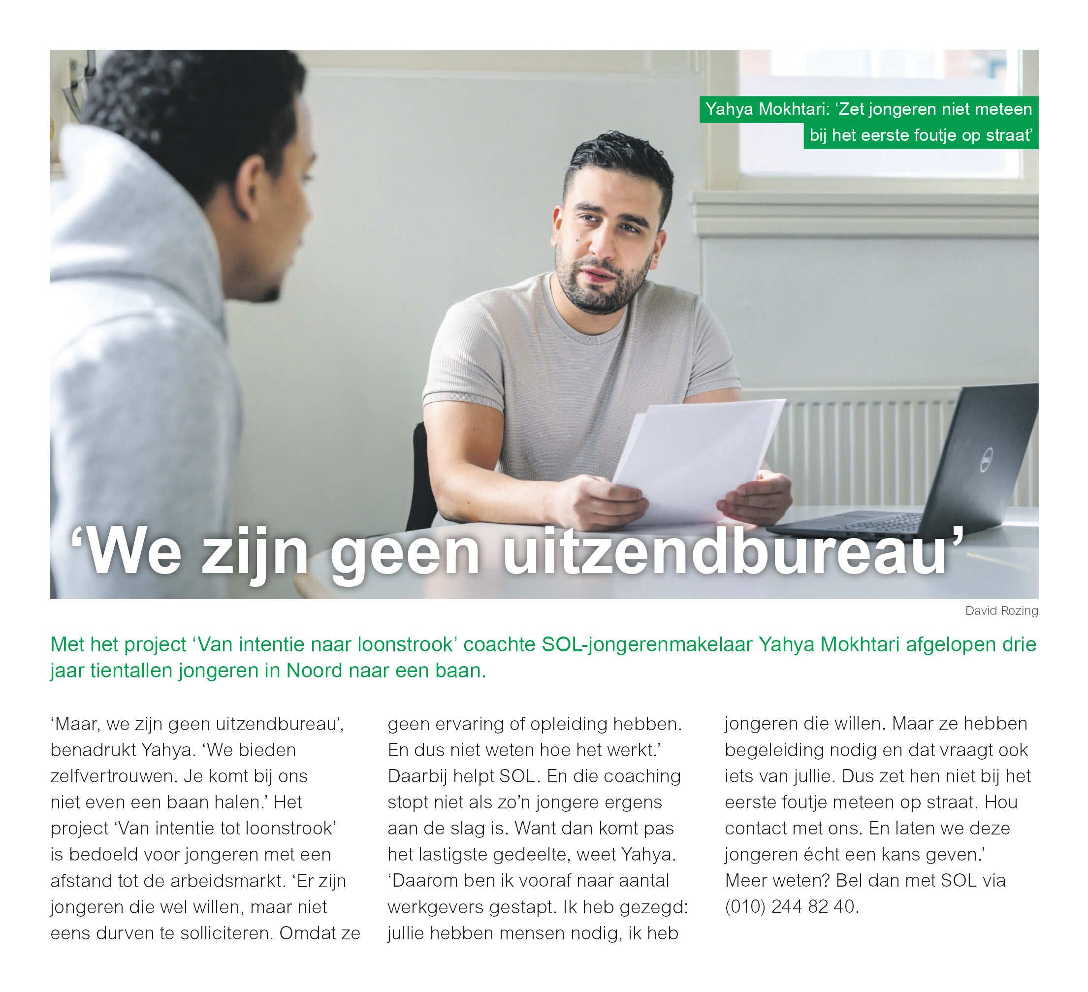 In ons boekje vertellen tien Rotterdammers hoe ze de baan vonden die ze dagelijks met plezier doen en hoe ze daarbij zijn geholpen door onze jongeren- en participatiemakelaars. Uit alle verhalen blijkt dat een beetje aandacht een heel verschil kan maken. Maar het allerbelangrijkste blijft toch wel: geef nooit op!