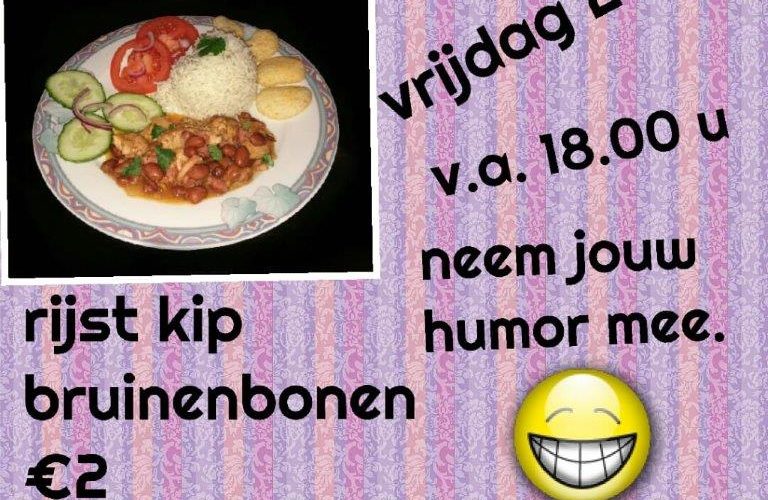 Ook deze vrijdag serveert buurtbewoonster Shirley Profijt en haar team weer een heerlijke buurtmaaltijd voor €2,00. Vanaf 18:00 in de Banier.
