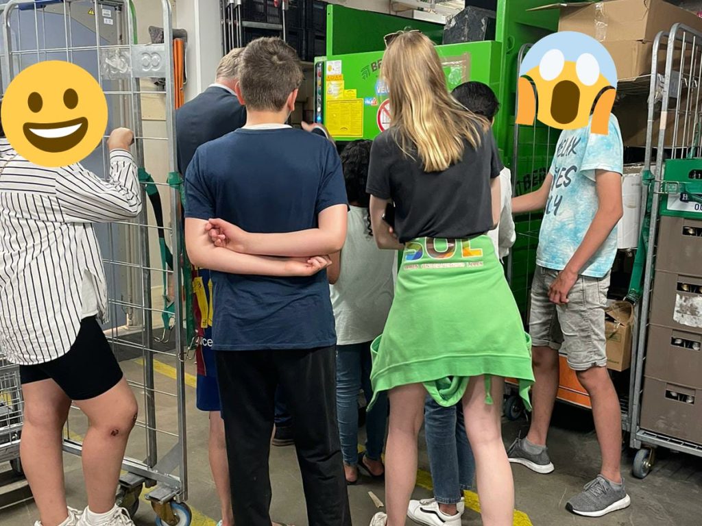 In ruil krijgen de jongeren sponsoring van de supermarkten én mochten zij een kijkje achter de schermen nemen: hoe zien de koeling, het kantoor, de kluis en de voorraadruimte eruit? En hoe werkt de statiegeldmachine? Een kijkje binnen het reilen en zeilen van de supermarkt.